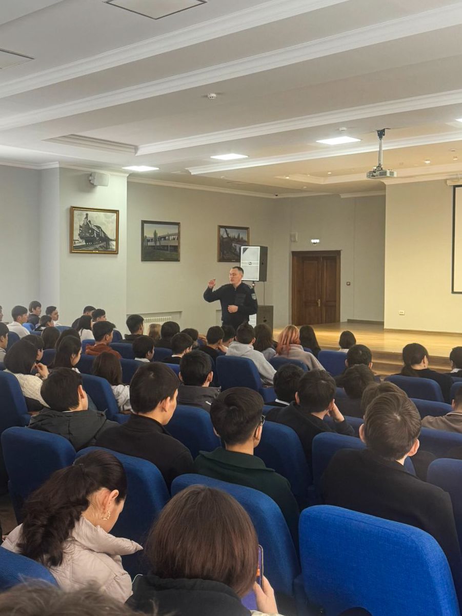 Алматы қаласы Әуезов ауданының ЮПБ полициясының аға учаскелік инспекторы Азимбаев Ш.Э оқу орнымыздың 2 курс студенттеріне құқық бұзушылықтың алдын алу мақсатында семинар-лекция оқыды.