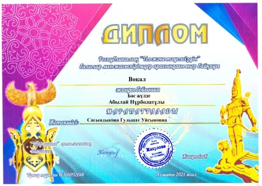 Обладатель гран-при в вокальном жанре - Абылай Нурболатович;